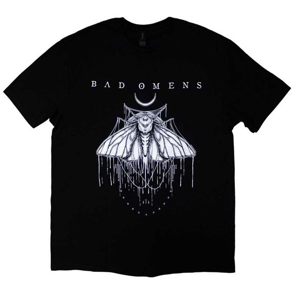 Bad Omens Unisex T-Shirt: Moth (Black) Zwart t-shirt 100% katoen (soft-style) top kwaliteit Geprint voor Official licensed metalcore band shirt
