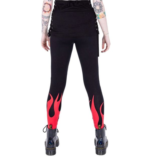 Heartless blood flame legging Stoere legging van katoen en elastaan met een perfecte stretch. Aparte details met vlammen print ,mesh (visnet) details en rijgveters Stof: 95% katoen en 5% elastaan