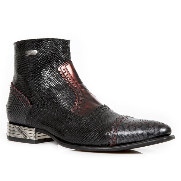 Newrock M.NW133-S7 Python heren laarsje Cowhide:Slang reliëf, geschubd motief en steampunk koper kleur pig skin voering natuurlijk rubberzool hoogte laars 14 cm (elastisch) hak hoogte 3 cm (chroom bewerkt)