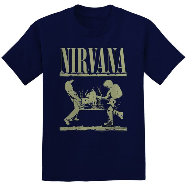 Nirvana Stage T-shirt (navy blue). Licensed bandmerch. Geprint op navy blauw katoen.