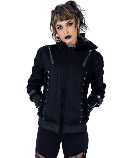 Rogue jacket voor dames in zwart van het merk poizen industries.